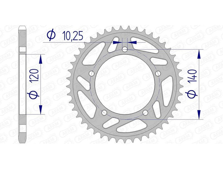 Afam aluminum crown gears are made of an alloy that is both light and tough. The Quality of Machining and the Precision of the Cutting Make AFM A Worldwide Standard Settes for Motorcycle Transmission Parts. Racing Aluminum Crown Gear Ultra-Light with Hard Anodizationreinforced Resistance to free and wearrange-topping Finish and Qualityessential for Competitive Riding Chain_pitch: 520.0 Material: Aluminum Rear_Procet_Teet: 44.0 REAR_PROET_SSION: Ultra-Light Hard Anodized