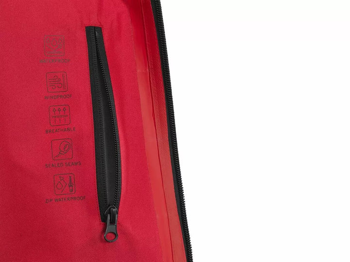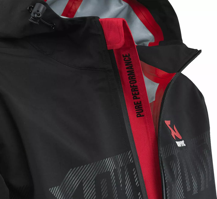 Made from 100% polyester, Its Three Layers Keep You Protected under Most Conditions., A 10,000 mm Water Column KEEPS OUT RAIN AND EVEN SNOW, and the 8,000 mm Breathable Column Maints Comfort., 3D Logo on the Front with Red Highlight