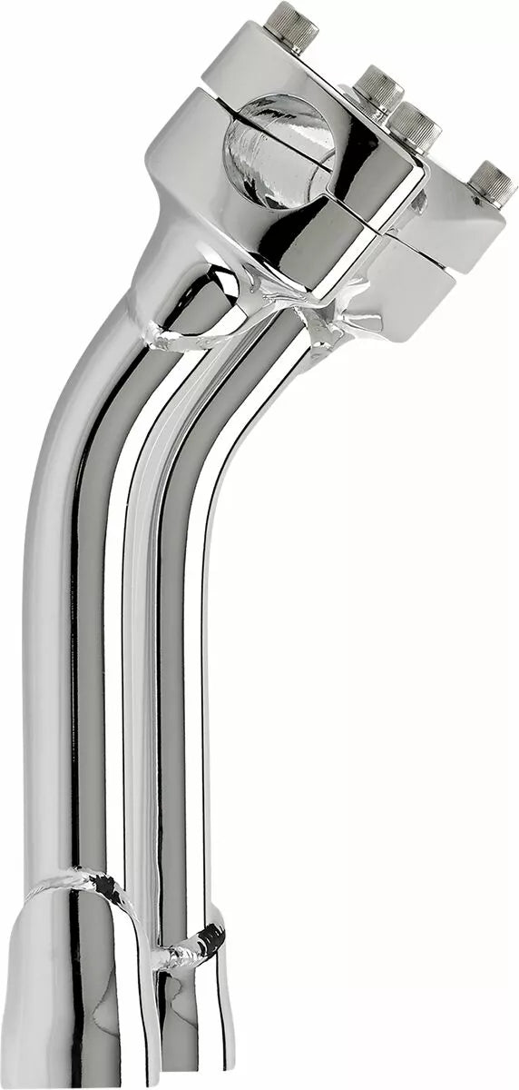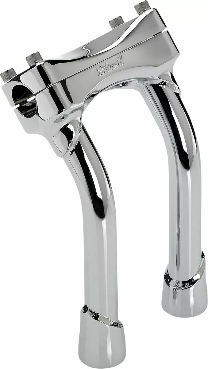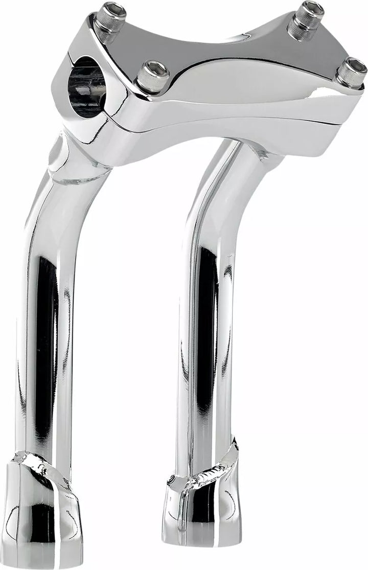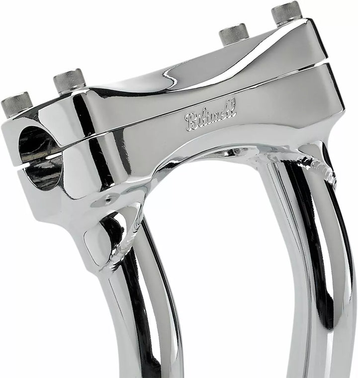 Investment-Cast One-Piece Steel Bar Clamp Accepts 1-1/8 "O.D. Handlebars, 0.120" (3 mm) Wall x 1 "o.d. 4130 Chromoly Uprights, CNC Lathe-Turned Mounting Base Accept 1/2-13 T.P.I. Stock Fit Most Stock and Select Aftermarket H-D Fork Trees, Pullback Murdock Risers Feature Mandrel-Bent Uprights for Two Inches of Rearward Bar Offset-Perfect for Reducing Reach for Shorter Riders, Tig Welded and Hand Polished Before, Bar Clamp Hardware