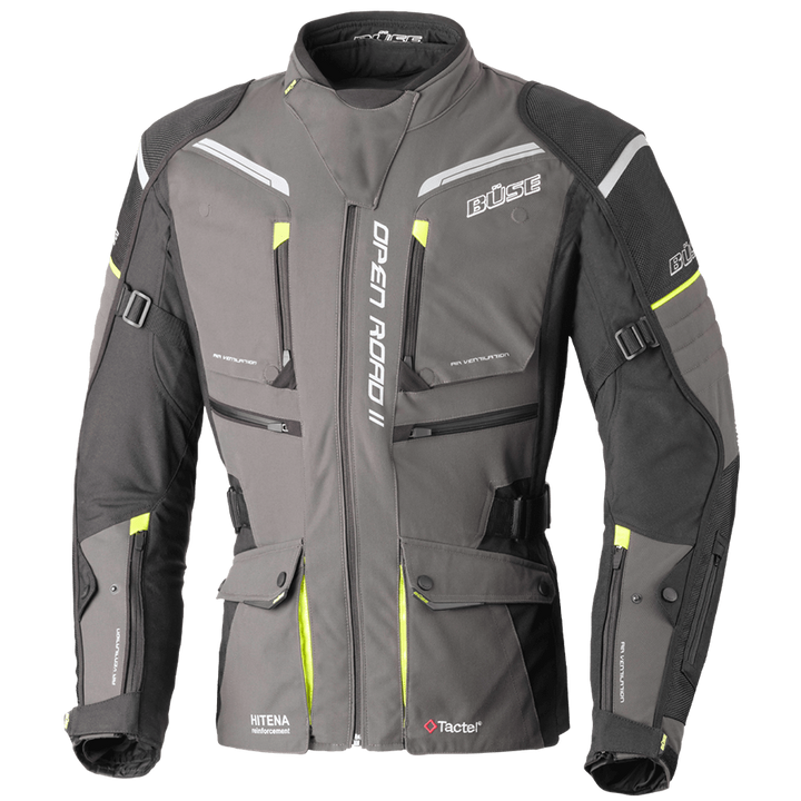 Ventilation at chest, shoulder, and back; sleeves through 2-way zipper,