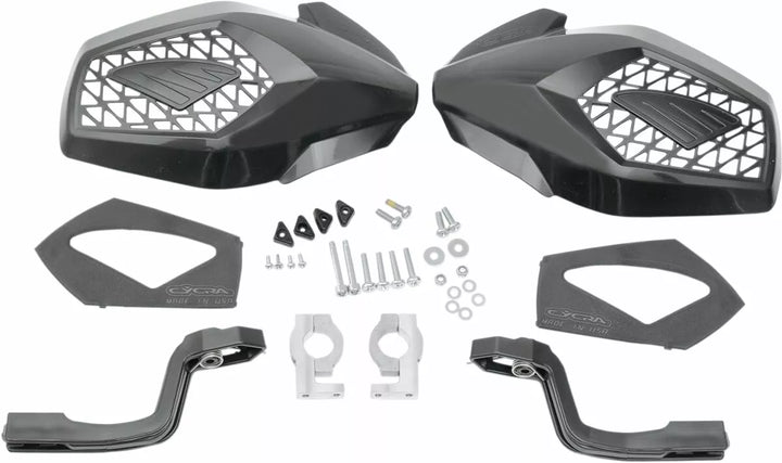 Recoil Technology Allows Handguards to Swing Out, Redesigned Composite Bracket Offers 33% Increase in Strength and flexibility, Removable Shield Cover for Vented Or Non-Vided Riding Conditions, Maximum Coverage for Sport and Utility ATVS, include Shinde Shield Directly to bars and most perches