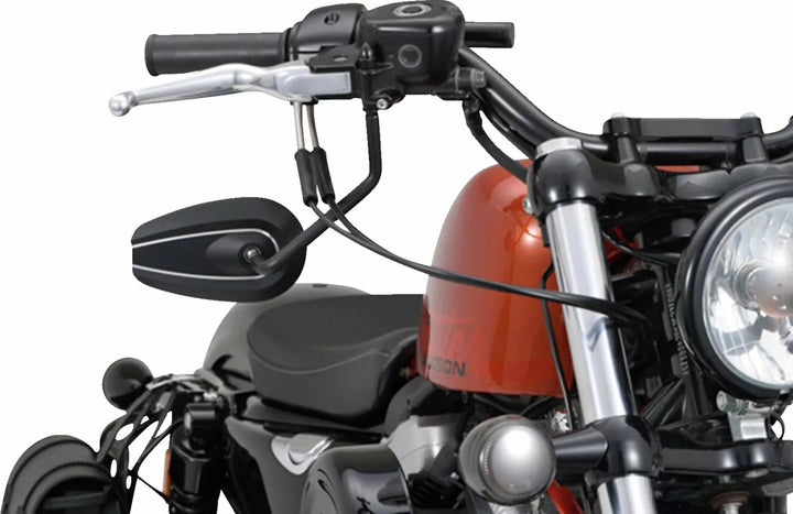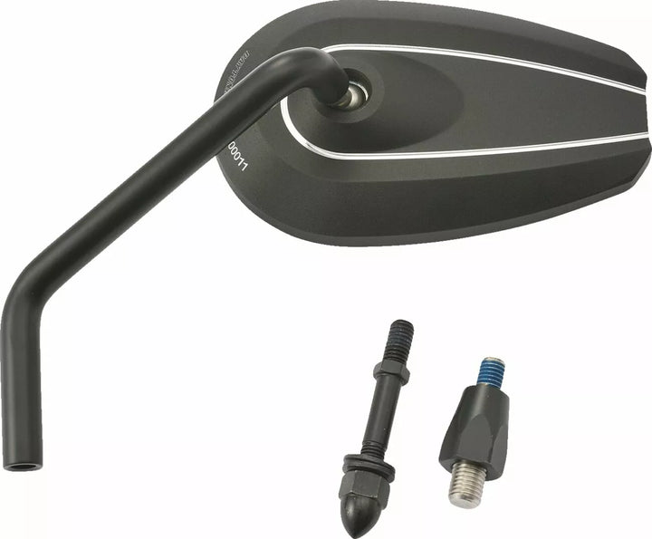 E-marked, Material Mirror Head: Aluminum With CNC Surface, Adapter M10 X P1.25 (R/H Thread) and Harley Included, Material Mirror Arm: Steel/Aluminum, CNC Aluminum Body
