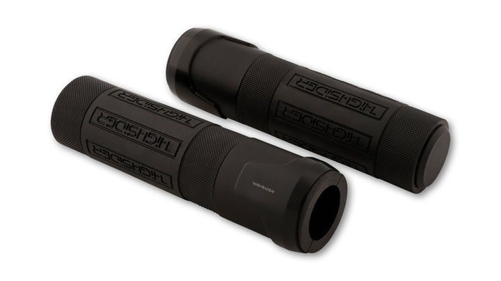 The Stylish 7/8 Inch Handlebar Grips Highsider Akron Create with the Superim position of the Two Aluminum Sleeves A New Kind of Design Language. The Outer Embodies Timeless Design With Its Lines and Forms A Beautiful Contrast with the trapezoidal tongues to the sublying bead blasted black aluminum cylinder. The Highsider Lettering is Incorporated Into the Handle Structure. The Removable End Caps Allow the Mounting of Handlebar End Indicators, Handlebar End Mirrors or Handlebar Weights. With These Grips, You Can Give Your Bike The Noble Highsider Look and Enhance Its Apperance.