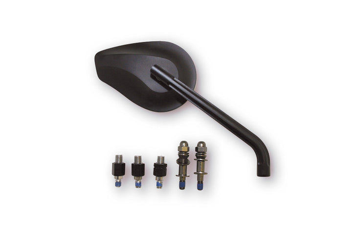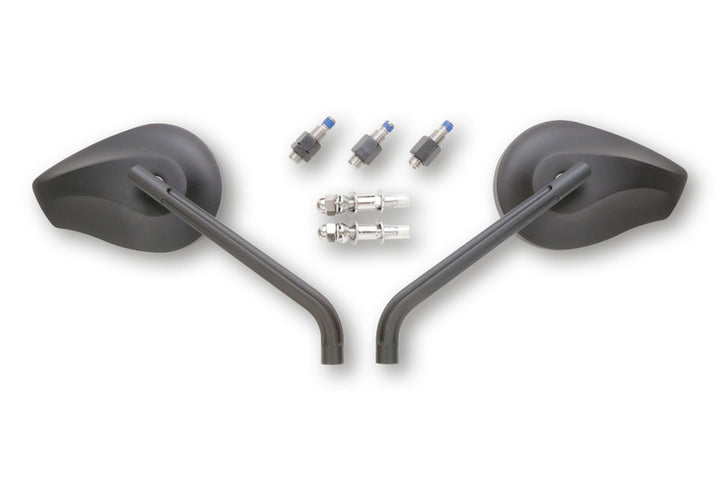 Highsider Phoenix 1 Mirror, aluminum, for HD models. Additional 2 x mirror adapters M10 x 1.25 mm and 1 x extra left-hand thread adapter for YAMAHA, E-tested, pair. Available in several colors.