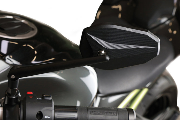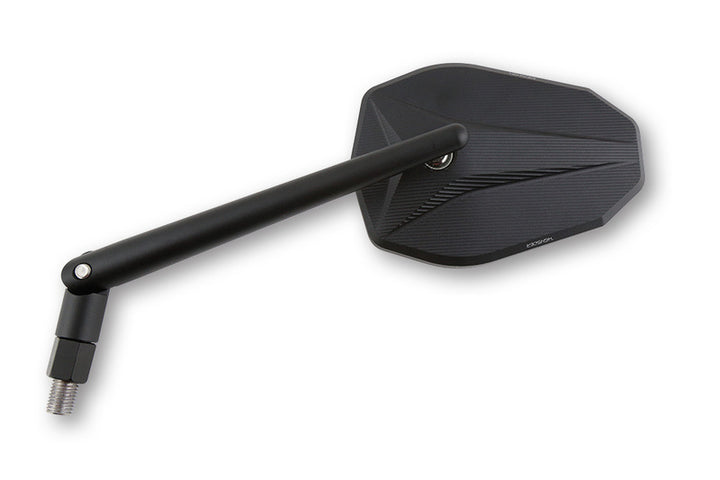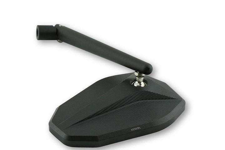 A distinguished universal mirror with a head in black anodized aluminum and adjustable trunk. Thanks to the advanced CNC-milled surface with tracks, Highsider Victory-X appears even more elegant and gives the timeless form a new visual highlight. By using a second joints on the handle, further adjustment options are given for your safety. Includes extra adapter M10 x 1.25 mm with left thread for Yamaha. Can be used for both left and right side, e-approved.