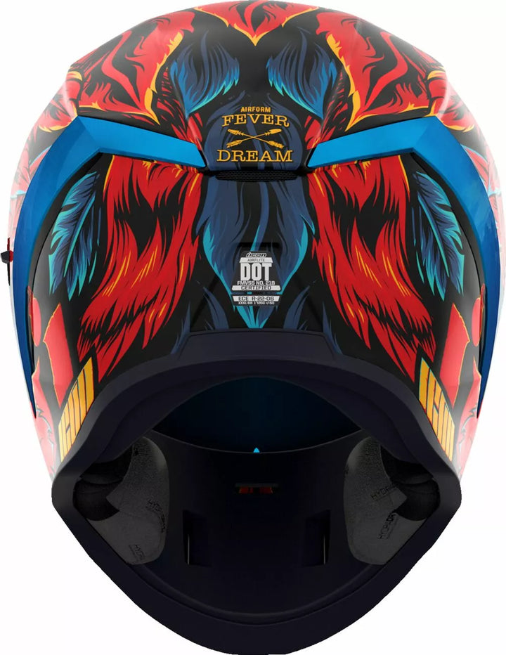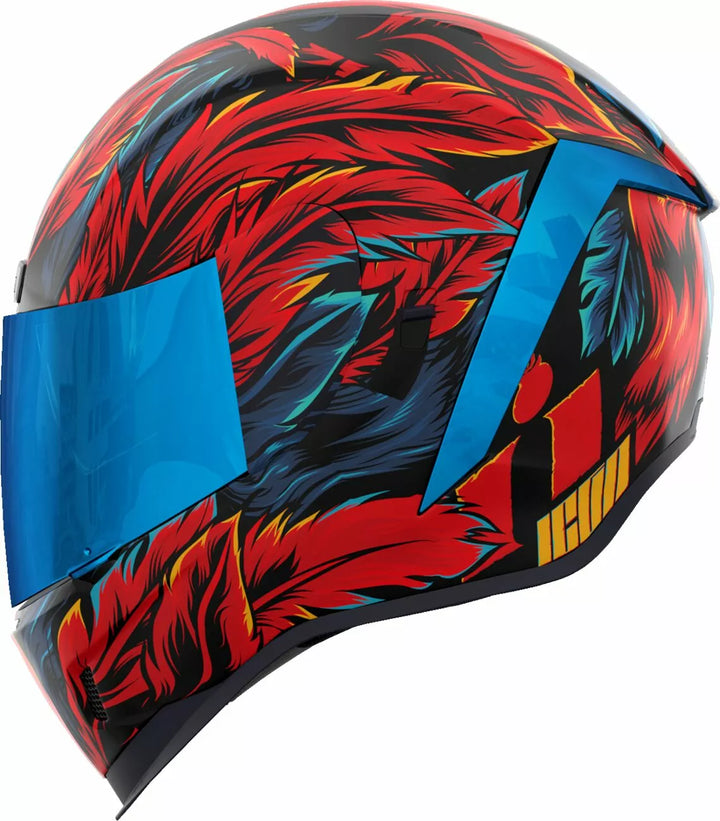 Injection Molded Polycarbonate Shell for Strength, Internal Airflow Geometry, Continuous Venting System, Sculpeed NECK Roll, FAG-FREE ICON OPTICS ™ Shield with Rapid-Reale ™ System, Prock ™ Positive Shield ™ Writing System, Internal Drop High Visor must only be used while the main face shield is in the fully closed position, removable Molded Breath Deflector, Removable Hydradry ™ 3-Piece Moisture Wicking Liner, Internal Speaker Pockets Work With Icon's R.A.U. Bluetooth Device, Includes Clear & RST BLUE FAG-FREE OPTICS ™ Shield