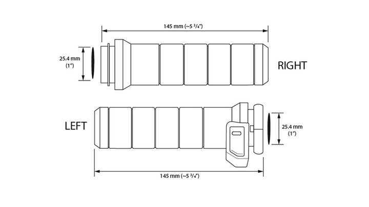 Titan-X Heated Grips for Harley-Davidsonor Titan-X Heated Grips have an integrated thumb Switch that LETS YOU Choose Between The 5 Temperature Ranges of the Heated Grips. Thisallows you to adjust the temperature of the heated grips without removing your hands from the handle bars. This Allows the Rider to Concentrate Better On The Road So You Canand Thus Also to Be Safer On The Road.The 5-Colour Led Switch Also Makes It Possible To Quickly Read The Current Heating Intensity. The Titan-X Heating Handlesalso have an automatic switch-off function, which means that the handles automatically switch off as soon as the battery voltage falls into a critical range. This means that the batteryis not further burdened and its performance is not impaired. The Times in which the motorcyclist has to search for the external temperature switch on the handlebars are thus numbered.ignition on and adjust the heating handles with your thumb. Made of High Quality Aluminum and Soft Rubber, The Grips Are Available in Either Chrome or Blackavilable. The variant victimed here is black. But no matter in which color, with these grips you will surely find your harley a little hotter. Fits 1 inch (25.4mm) + 1 inch (24.5mm) Handlebar / Length 125mm Only suitable for Harley Davidson Models with Manual Throttle Gripspecifications: Integrated Thumb Switch Switch for Adjusting Heating Intensity Fit Exclusivory Design Selectable-5 Color LED Display to Show Theheating The Heat-Autatic Switch-off to Protect the Vehicle Battery Color: Black Diameter: 25.4 Switch_type: Intégré Use: Custom