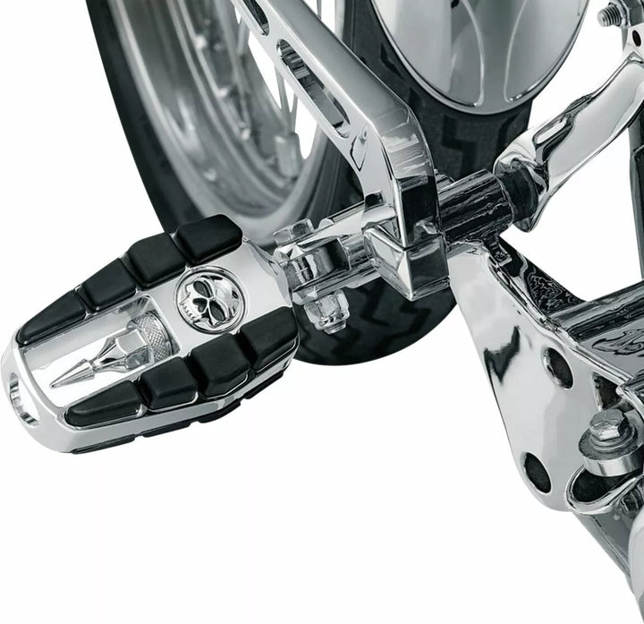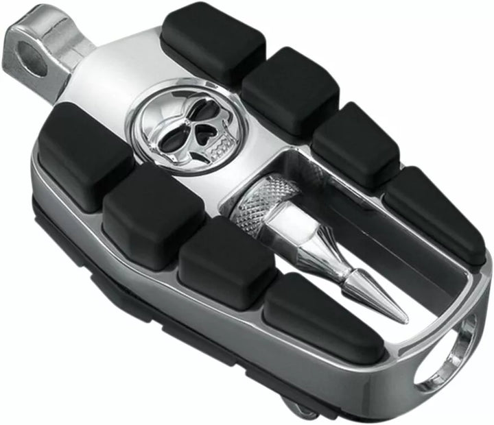 Feature A Sinister Chrome Spire Point and A SHOULD NESTLED BETWEEN THE RUBBER PADS, Chrome Bodies with Rubber Pads, Sturdy, Rugged Pegs Design, Footpegs with Male-Mount Ends Require Require Male-Mount Footpeg Mounts or adapters Kuryakyn Footpeg Adapters