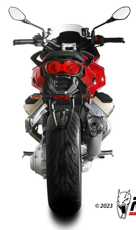 The Delta Race Exhaust Features an Exclusive Shape That, Through a Gradual Transformation, From Conical Beces Hexagonal. There are many details that make it unique, such as the 3k twill carbon cap; The Perimeter Bracket with Double Riving, The Special Machined Inlet Bushing To Offer Maximum Coupling Precision. This Exhaust Sports The Characteristic MIVV Logo Created by Laser Technology.