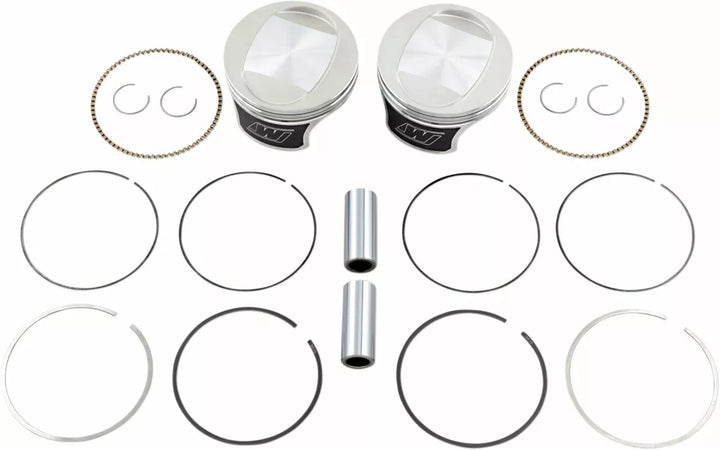 Forged Piston Crown with Genrous Valve Pockets for Big Valves and Cams, Precision-Fit Rings Selected for Each Application for Ultimate Sealing, Force-Fed Pin Oiling Provides Enhanced Lubrication of the Piston Pin, Power Power Lights, Ring Linduces Rima, Coating Reduces Friction, Providing Quiester Operation and Improving Scuff Resistance, Valued-Packaged with Two Pistons, Rings, Piston Pins and Circips, Piston Is Made in the USA