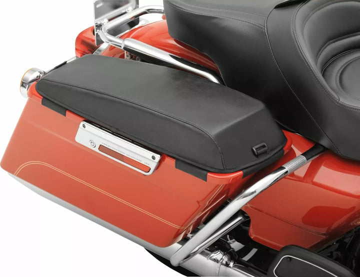 Saddlebag Chaps Protect Bagger's Saddlebag Lids; Soft Backside is Gentle on Paint, and the Durable, Weather resistant Exterior Protects Against Road Debris, Boot Scuffs and Other Dangers to the hard bags, attach securely; Easy On, Easy Off, Easy to Install, Without Drilling or Modifying Bike, Lid Cover Only