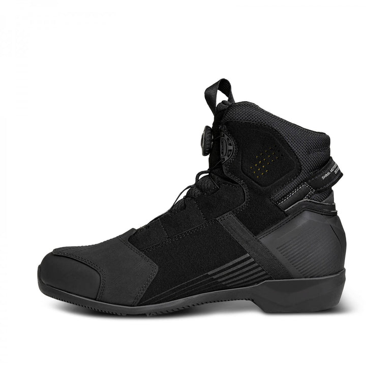The Shima Edge Vented shoes are equipped with a band that makes it easier to put on the shoe and the innovative atop lacing system that you can easily use with one hand, even without removing the glove. For even better comfort, the Edge Vented model has a wedge that makes it easier to find the right position for the leg on the footrest and a reinforcement in the area of ​​the switch. However, reflective elements will keep you safe even after dark.