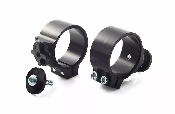 Clip-on Racing, High-grade Premium Clip-ons for Sports Bike and Professional Racing Applications, CNC-Milled From High-Strength Aluminum, Particulally Robust Construction, Yet Lighter Than Most Original Parts, Anodise in Black, Set Long Libludes Tub OPTIONALLY AVAILABLE, CLAMPS FOR 45, 50, 53 and 55mm Front Forks, Adapttion to Other Dimensions Using Spacers (38, 41, 43, 46, 48, 51, 52mm), particularly Easy Tube Replacement