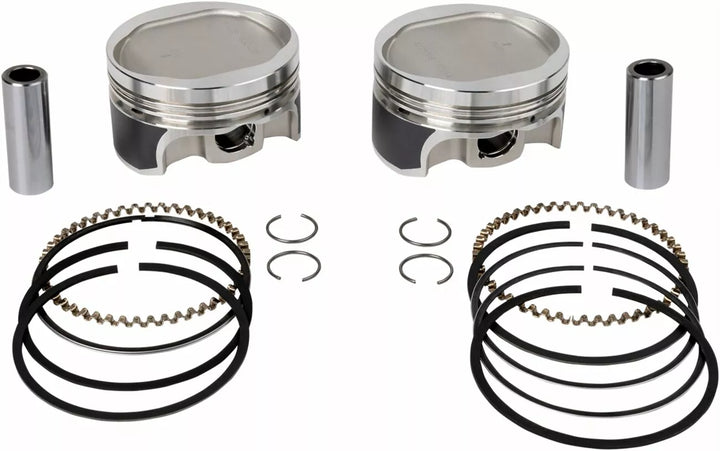 Forged Piston Crown with Genrous Valve Pockets for Big Valves and Cams, Precision-Fit Rings Selected for Each Application for Ultimate Sealing, Force-Fed Pin Oiling Provides Enhanced Lubrication of the Piston Pin, Power Power Lights, Ring Linduces Rima, Coating Reduces Friction, Providing Quiester Operation and Improving Scuff Resistance, Valued-Packaged with Two Pistons, Rings, Piston Pins and Circips, Piston Is Made in the USA