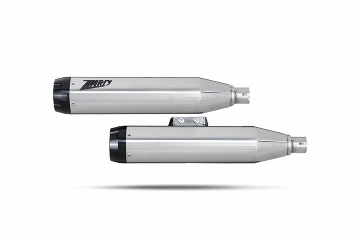 ZARD SLIP-ON MUFFLERS FOR HD SOFTAIL M8, Zard slip-ons overlapped for the Harley-Davidsonᆴ Softails, are designed to seamlessly integrate with the various configurations of the Cruiser lineup, Made from AISI 304 acciaio inox, these slip-ons are characterized by their compactness and a wide range of finishes that enhance the well-defined character of your cruiser, they are available in the Following versions: Satin-Finished Stainless Steel with Black Anodized Aluminum End Caps, Stainssen alumin Polished Stainless Steel with Black Anodized Aluminum End Caps, Zard Slip-ons for the Harley-Davidson ᆴ Softails are available in racing or euro 4/5 homologated version and come with the approval db kills, the slip to the eures are ligtweight Compared to oem slip-ons)) and help to INCrease Performance (+1.1 hp for the euro 4/5 homologated version), giving the bike the distinctive zard sound