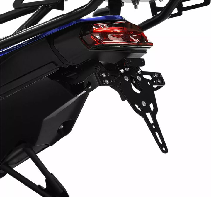 The License Plate Holder is Extremely Durable and Weather Proof., Black Powder Coated. , The License Plate Holder Can Be Used For Any Kind of License Plate (175mm Width)., No Modification of Fairing Required., Stepless Adjustment of Rake Angle., Indicator Support Adjustable in 3 Positions. Plate., Special Indicator Light Mounts (Sold Separately) Required for Stock Indicator Lights., Kit Includes: 1 License Plate Holder Incl. Mounting Kit., LED License Plate Light "E Approsved" Incl. Support., Back Light With Support. Of: Germany, Slovenia, Croatia & UK.