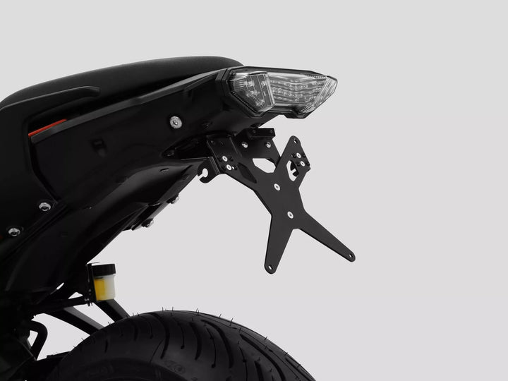 The License Plate Holder is Extremely Durable and Weather Proof., Black Powder Coated. , The License Plate Holder Can Be Used For Any Kind of License Plate (175mm Width)., No Modification of Fairing Required., Stepless Adjustment of Rake Angle., Indicator Support Adjustable in 3 Positions. Plate., Special Indicator Light Mounts (Sold Separately) Required for Stock Indicator Lights., Kit Includes: 1 License Plate Holder Incl. Mounting Kit., LED License Plate Light "e Approved" Incl. Support., Back Light With Support. Disclaimer: Important: For the use of this license Plate Holder with the oem Turn Signals of Ducati Models (2015 - Present) A Special Holder is Needed (Zieger Turn Signal Adapter and Duc. Parts Europe Part Number: 20301971. Vendor Number: 10005790).
