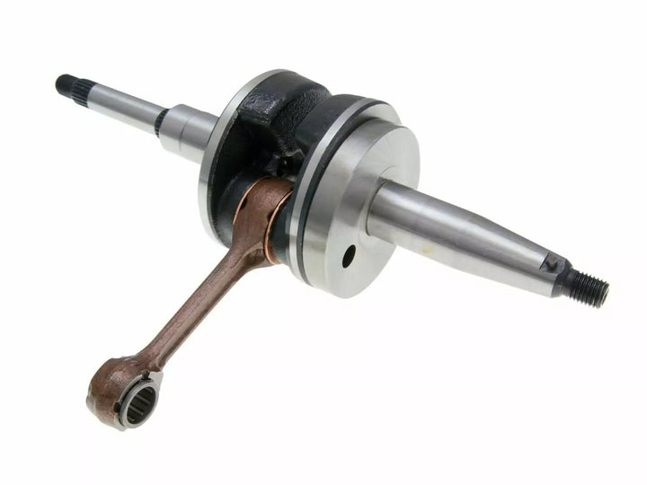 Crankshaft for scooters equipped with a horizontal peruot engine, suitable for 50cc and 70cc sport cylinders, use range up to 13,000 rpm, the lower connecting rod bearing is equipped with a copper wastor, DELIVERE DELIVERE ENDERE encludes Small Our recommendation: also change the crank shaft bearings and shaft sealing rings (sold separately), a good 2-cycle oil prolongs the life of the O virabrequim, um virabrequim deve ser substituído o mais recente após 20.000 km de uso normal, uso de lamento. Problemas com o motor, nossa recomendação: Altere também os rolamentos do eixo da manivela e os anéis de vedação do eixo (vendidos separadamente)