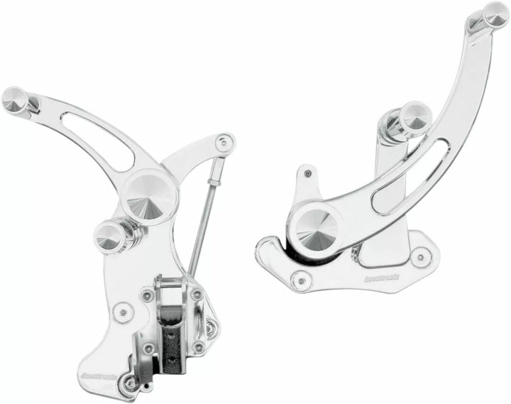 CNC-Machined From 6061 T-6 Aluminum, 3/4 "Mounting Plates for Superior Strength, Features Sealed Bearings on the Pivot Points for Smooth Operation and No Maintenance, Assembled With Chrome Hardware and Kiter Cylind Toe Pegs, Mounting Hardware and Instructions, Made in the USA, When Installing Extended Forward Controls, Check Fender Clearance before operating.