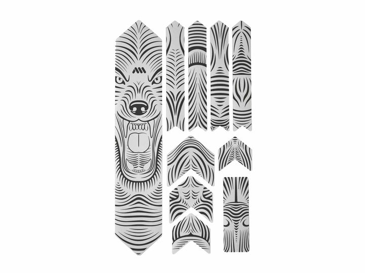 O protetor de moldura do favo de mel da AMS protege os quadros de bicicletas de impactos, arranhões e esfregamento de cabos., É feito de um PVC adesivo de favo de mel com favo de mel com uma qualidade que durará mais que sua bicicleta. PVC semi-rígido da Micron, materiais de grau automotivo. Não será amarelo ao longo do tempo., Peso mínimo (28 gramas / 0,98 onças)., Escopo de entrega: 10 partes para um sistema de proteção universal: 1 grande parte para o tubo para baixo; 4 Peças de seta para estender a proteção do tubo para baixo ou o tubo superior, 4 partes para o chainstay; 1 retângulo para proteção de desgaste de cabos ou outros usos., Este produto foi projetado e produzido em Barcelona pelos pilotos, para pilotos!