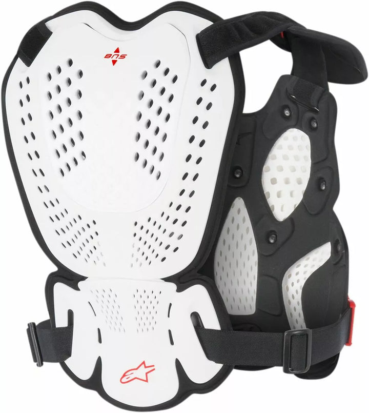 EN 14021: 2003, Stone Shield and Back Protectors Are Constructed From A High Performance Poly-Material Blend for Optimized Flexibility and Excellent Weight Saving, The Protector Spastic Shells Are Perforated for Maximum BREATHABILITY AND COOLING VALID Easy-to-Use Buckles That Fit A Broad Range of Rider Body Types, Thermoformed Padded Chassis For Optimized Levels of Comfort and Close-to-The-Body Fit, Modular Design Means A-1 is Optimized for use with BNS NECK BRACES BACA BAC BAC Para um engajamento fácil e seguro dos BNs, ombreistas removíveis e ajustáveis para regulação de tamanho com aba de puxar de silício BNS integrado, sistema de tira Y integrado inovador para uso modular de protetor traseiro com montagem rápida e conveniente, proteger traseiro