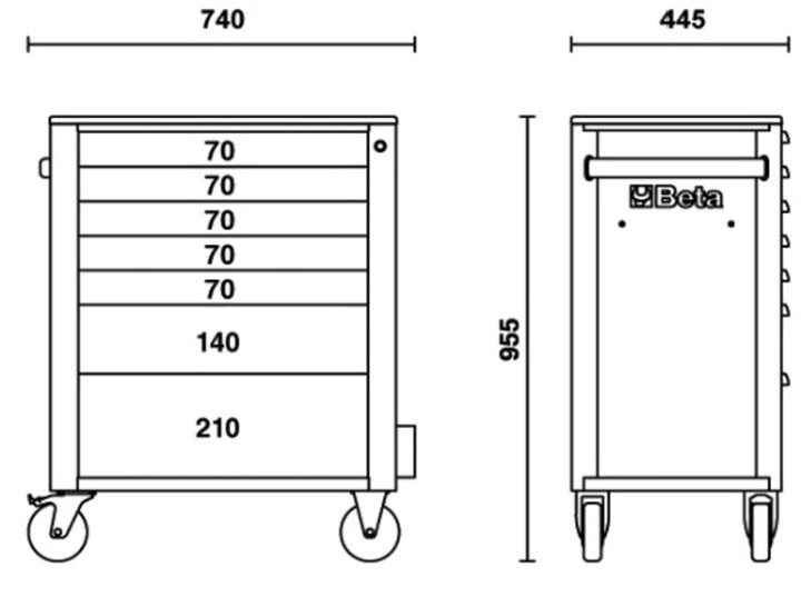 ∅ 4 rodas 125 mm (2 fixo - 2 giratório equipado com um freio)