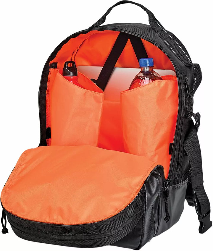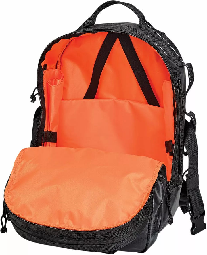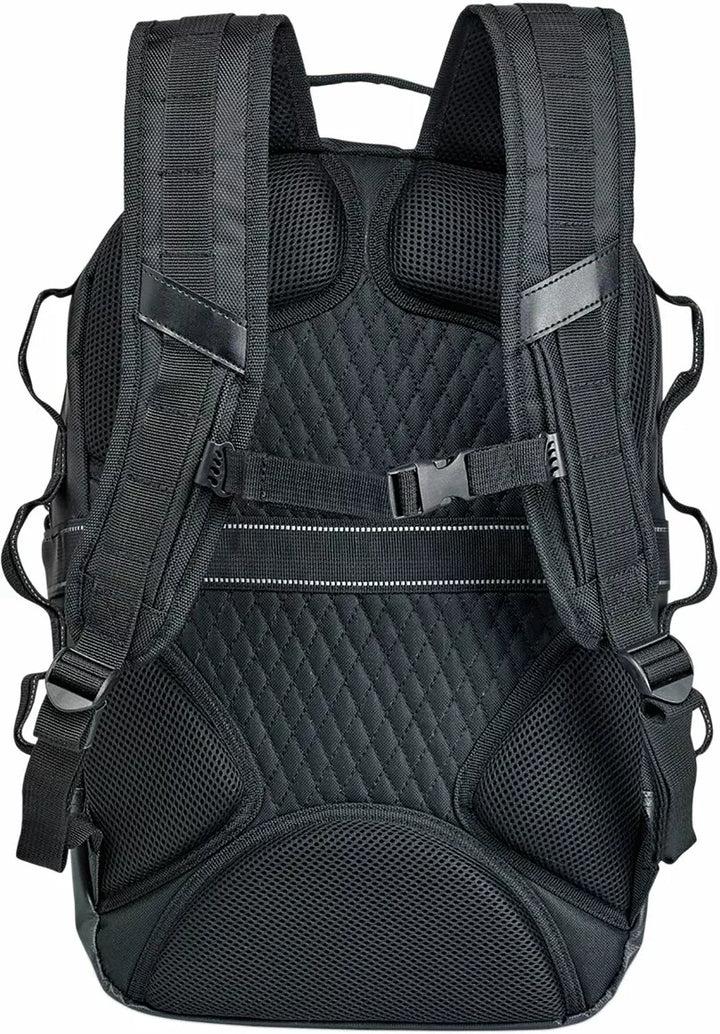 1680 Denier Ballistic Nylon Outer Chassis With PVC Coating Outer Shell, PVC-Treated Heavy-Duty Bottom and Lower Side Panel's Resist Water and Dirt, Padded Laptop Sleeve With Elastic Retainers in the main compartment, Upper exterior Compartment Molded Nylon Buckles on Cinch Straps For Speedy Mounting on Sissy Bars, External Straps Can Be Used to Add a Bedroll, Jacket or Skateboard to the Bag, 6 Pontos de chicote de barriga pesados e presos para o carregamento e bioming, acolchoados e conforto, mantém 48 a 12 onças de latas