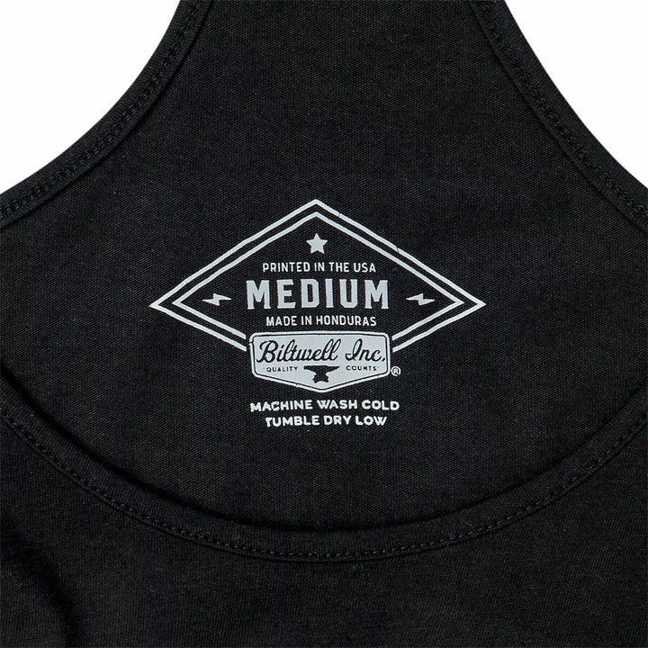 Sidseamed, Merrowed Bottom Home, encher na costura Racerback, feita com 91% de poliéster / 9% de algodão penteado e anel-pun, impresso nos EUA