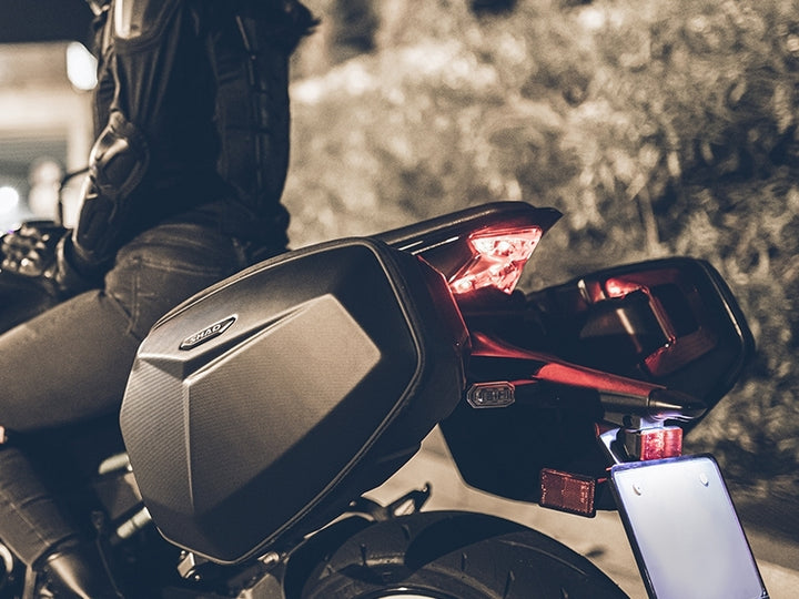 Alforjes com sistema de bloqueio com chaves para o ajuste SR, que permite travar pela combinação do compartimento principal. O suporte do saco lateral do sistema de ajuste SR oferece uma integração de estética perfeita à motocicleta e garante um ajuste forte e leve feito de poliamida e fibra de vidro. Eles têm uma capacidade de 15 litros por bolsa e podem ser facilmente transportados graças à sua peça de destaque vermelho, que integra a alça de transporte.