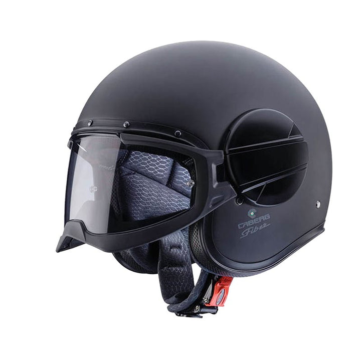 Dois tamanhos de concha para oferecer as melhores proporções possíveis entre o tamanho principal e o volume do terremoto. A casca pequena inclui o XS-L e a concha grande XL-XXL. Um visor de pinlock é montado para neutralizar o nevoeiro. Tensado com fivela rápida com levemente ajustada micrometicamente. Interior climático totalmente removível e lavável e detalhes cosméticos finos. O capacete é preparado para o sistema de intercomunicação justo de Caberg e tem espaço extra para fones de ouvido e microfone.