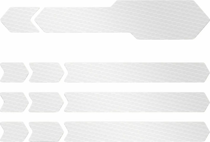 Os protetores de quadros adesivos de algis para bicicletas são feitos de plástico macio com uma alta espessura de 0,4 mm., O adesivo usado é muito forte e impede que os protetores descamncem ao longo do tempo., A estrutura adesiva de Algis CER Surface. Para seguir a forma da sua bicicleta que também pode ser cortada com tesoura ou um corte simples.