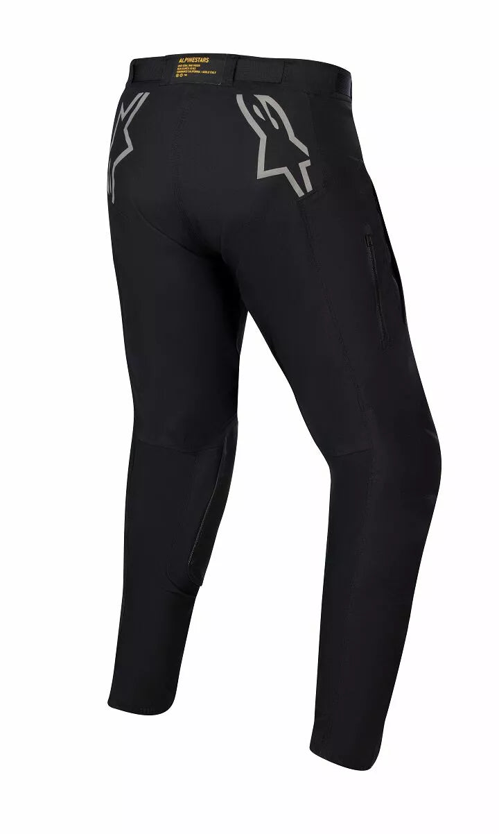 Material de tela de poliamida rugada em chassi e couro de cabra em joelhos internos para durabilidade. , Material de rede de este estendimento respirável e elástica na parte de trás das pernas para conforto., Torda aberta nas coxas para ventilação extra., Projetada para caber nos protetores dos joelhos dos Alpinestars.