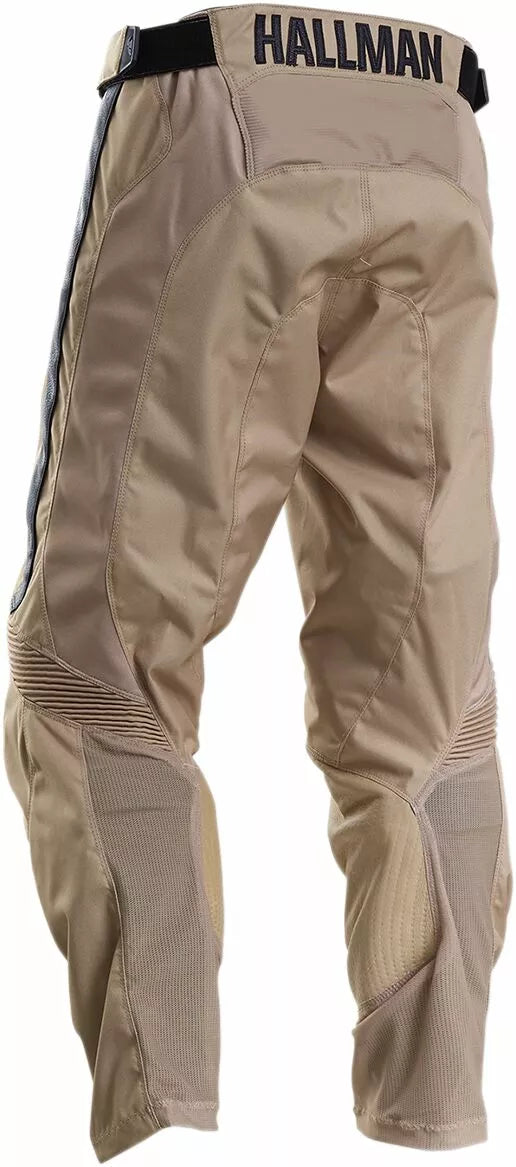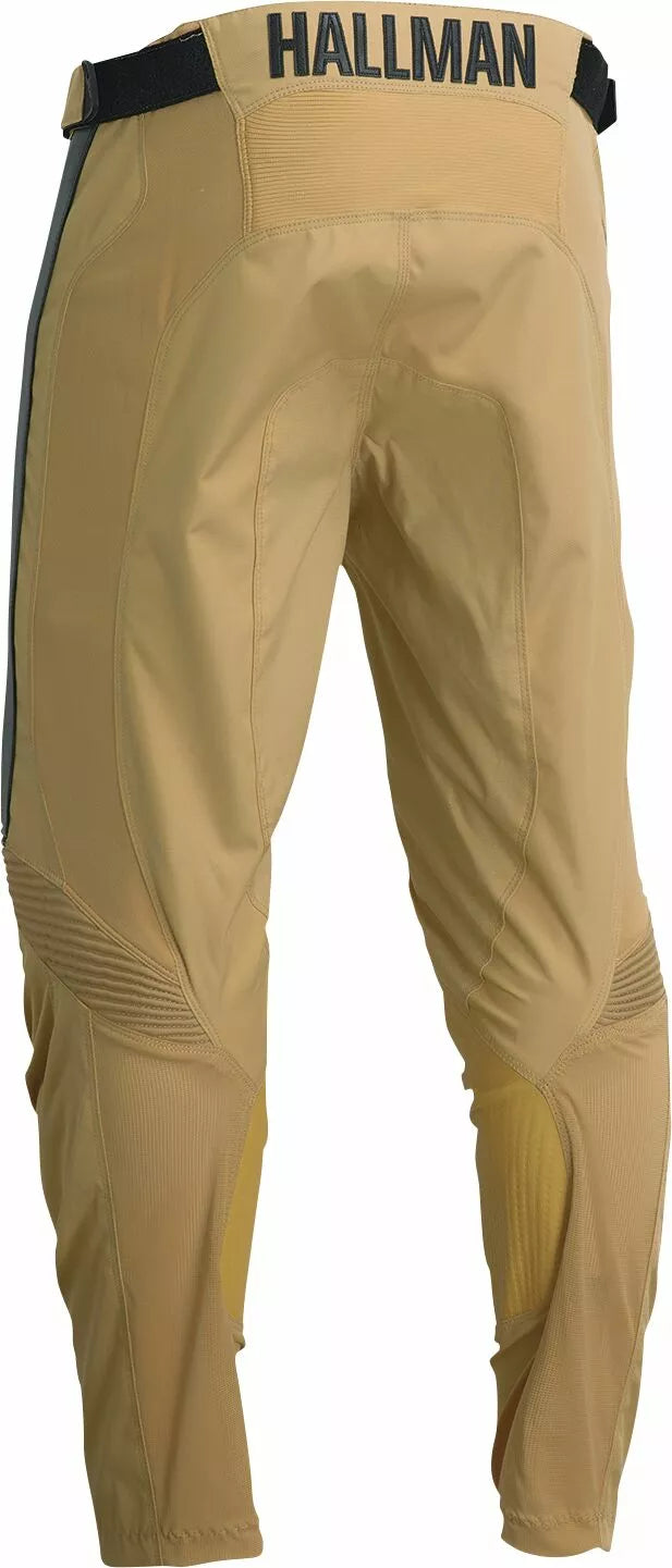 Liner de malha atlética, painéis de expansão lateral, painéis de joelho de couro de grão completo, materiais tolerantes à abrasão, costura dupla e tripla para durabilidade, fechamento do estilo de catraca, cinveres laterais de quadril ajustáveis, pré-curvados para gráficos, bolso do quadril interior