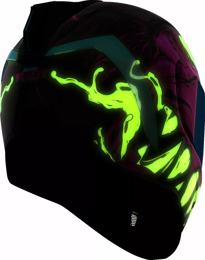 Continuous Venting System, FAG-FREE ICON OPTICS ™ Shield with Rapid-release ™ System, Injection Molded Polycarbonate Shell for Strength, Internal Airflow Geometry, Sculpted NECK Roll, Prolock ™ Switsch, the EXTERIOR WITH LOCKING SHIVING SWEQU Visor must only be used while the main face shield is in the fully closed position, removable Molded Breath Deflector, Removable Hydradry ™ 3-Piece Moisture Wicking Liner, os bolsos internos do alto -falante trabalham com a R.A.U. do ICON. Dispositivo Bluetooth, inclui Dark Smoke Dropshield ™ e Rubatone Black Speedfin ™