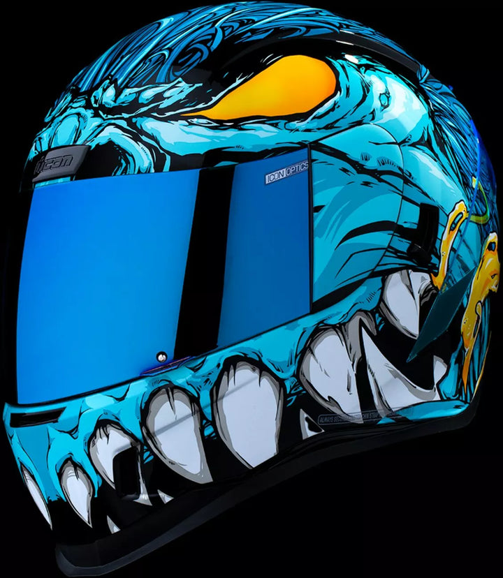 Continuous Venting System, FAG-FREE ICON OPTICS ™ Shield with Rapid-release ™ System, Injection Molded Polycarbonate Shell for Strength, Internal Airflow Geometry, Sculpted NECK Roll, Prolock ™ Switsch, the EXTERIOR WITH LOCKING SHIVING SWEQU Visor must only be used while the main face shield is in the fully closed position, removable Molded Breath Deflector, Removable Hydradry ™ 3-Piece Moisture Wicking Liner, os bolsos internos do alto -falante trabalham com a R.A.U. do ICON. Dispositivo Bluetooth, inclui Dark Smoke Dropshield ™ e Rubatone Black Speedfin ™