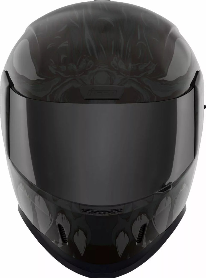 Continuous Venting System, FAG-FREE ICON OPTICS ™ Shield with Rapid-release ™ System, Injection Molded Polycarbonate Shell for Strength, Internal Airflow Geometry, Sculpted NECK Roll, Prolock ™ Switsch, the EXTERIOR WITH LOCKING SHIVING SWEQU Visor must only be used while the main face shield is in the fully closed position, removable Molded Breath Deflector, Removable Hydradry ™ 3-Piece Moisture Wicking Liner, os bolsos internos do alto -falante trabalham com a R.A.U. do ICON. Dispositivo Bluetooth, inclui Dark Smoke Dropshield ™ e Rubatone Black Speedfin ™