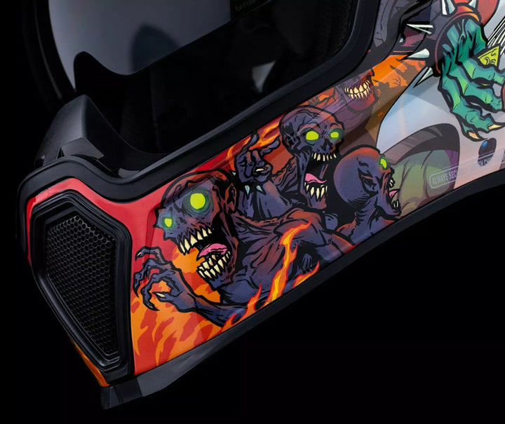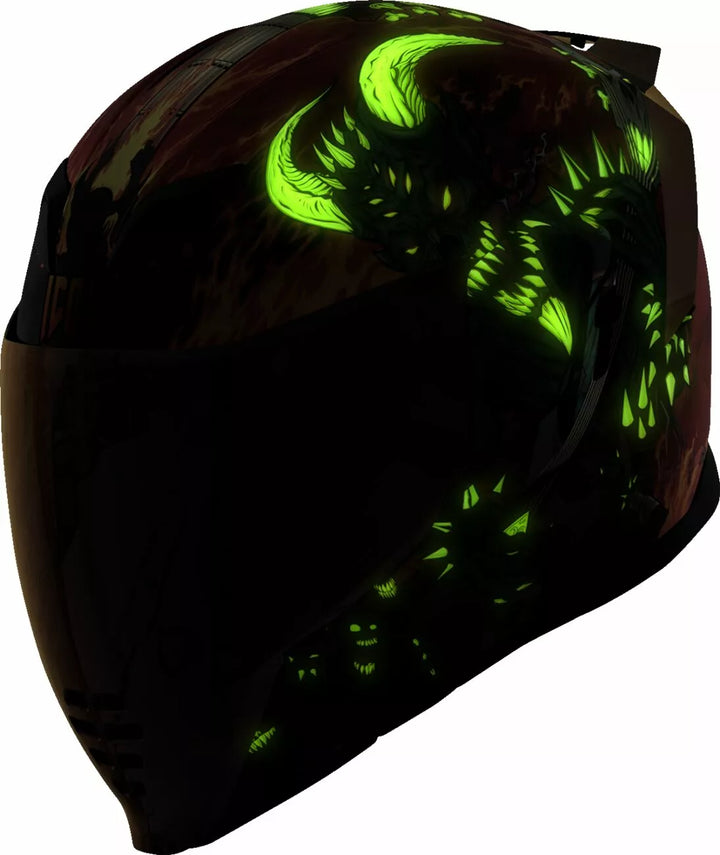 Removable Molded Breath Deflector and Chin Curtain, Injection Molded Polycarbonate Shell for Strength, FAG-FREE Dropshield ™ with Exterior Switch, Recessed Twin Channel Supervent Cooling System, Multiple Oversized Intake Ports Side Plates, The Dropshield ™ Visor Must Only Be Used While the Main Face Shield Is In The Fully Closed Position, Removable Hydradry ™ Moisture Wicking Liner, Glow in the Dark, Internal Speaker Pockets Work With R.A.U. do ícone Dispositivo Bluetooth, Inclui Clear & Rst Sunset Fog Free FlitesShield