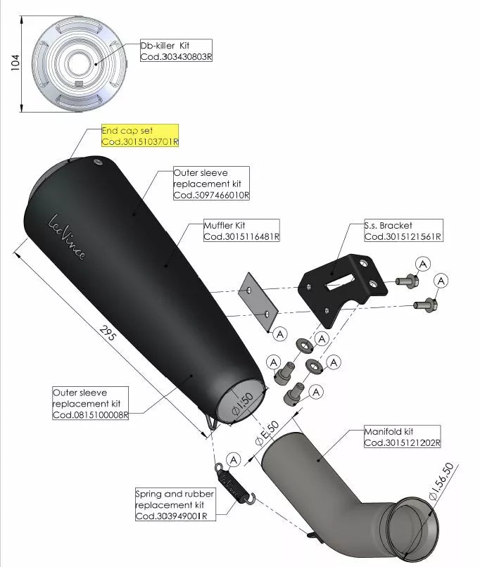 Legro de exaustão de peças de reposição de escape, tampas finais, disponíveis em aço inoxidável ou carbono