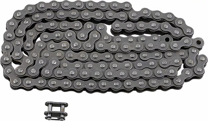 Construção de aço de liga de carbono médio tratado térmico, todos os componentes tratados com tiro e tiro para resistência máxima, rivros de pinos de quatro pontos e rolos sólidos, as correntes incluem o link de conexão de clipe