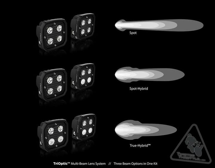 Sistema de linha Trioptic ™ está no coração da flexibilidade do D4. Com Lentes True Hybrid ™ Você recebe uma combinação de ponto e inundação, o que dá Faixa de 170 metros em frente e 42 metros de lado. Você quer distância máxima? Mude para o acompanhante as lentes spot e obter uma imagem leve concentrada atingindo o todo 243 metros de frente com uma largura de 33 metros. Para aqueles que querem algo no meio, também há a oportunidade de combinar uma lente spot e uma lente híbrida por lâmpada - para criar um Configuração híbrida de ponto com alcance de 190 metros e 42 metros de largura.