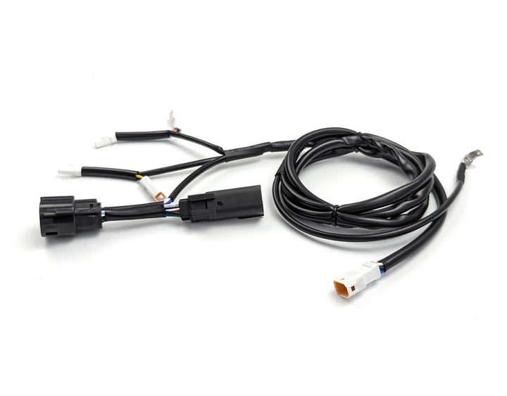 Este adaptador de cabo inteligente se conecta diretamente a farol, buzina e Contatos do pisca -piscar No Desertx, que fornece acesso a todos os recursos do DialDim sem precisar modificar o sistema elétrico do seu MC.