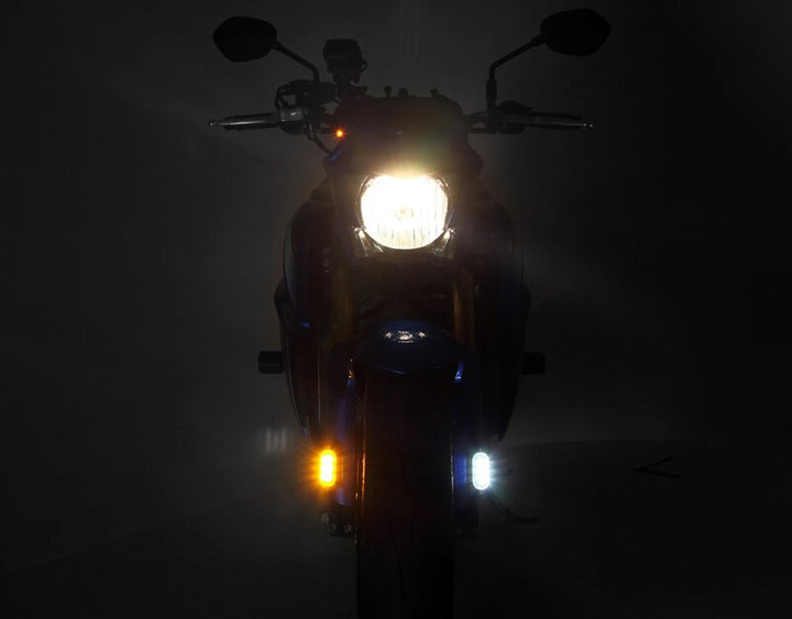 Os dispositivos T3 frontal fornecem luzes fortes de posição branca que mudam automaticamente para amarelo ao ligar os pisca -pisca. A função de feedback inteligente deixa você claro em todos os ângulos - dia e noite, independentemente do clima.