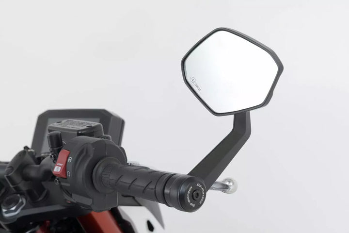Os espelhos são feitos de alumínio forjado, moído e preto anodizado e apresentam detalhes do logotipo gravado. Assim, eles acrescentam um toque robusto, mas elegante, ao seu guidão., O braço de embrulho aerodinamicamente projetado e o design simples e atemporal dos espelhos se misturam perfeitamente com as bicicletas esportivas nuas e eiter modernas ou os modernos scramblers de estilo retro ou cafä racf. e ajuste versátil do seu campo de visão, para que você sempre tenha uma visão clara do que está acontecendo atrás de você. Juntamente com as peças de montagem incluídas nos conjuntos, elas podem ser montadas na sua motocicleta com um ajuste perfeito e garantir uma aparência de alta queenidade e harmoniosos, graças a superfícies cuidadosamente selecionadas e coordenadas. A motocicleta atrairá o estacionamento com esses espelhos exclusivos e sempre ficará de olho nos seus passageiros na estrada., Feito de alta qualidade, esqueceu e alumínio anodizado preto. Garante o alinhamento preciso do campo da visão., Comprimento do braço espelhado: 157 mm. Esporte de conjunto de entrega: 1 x espelho, 1 x Instruções de montagem e material de montagem.