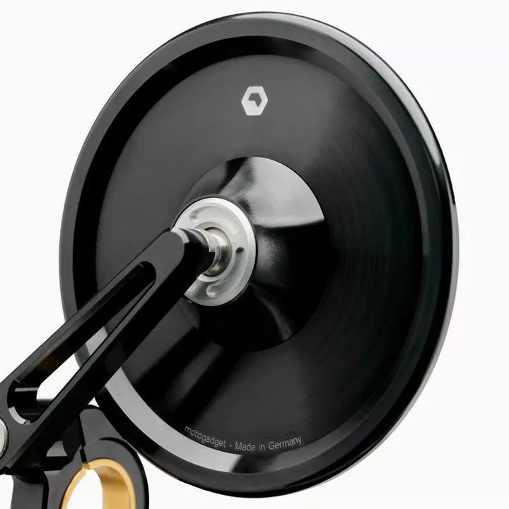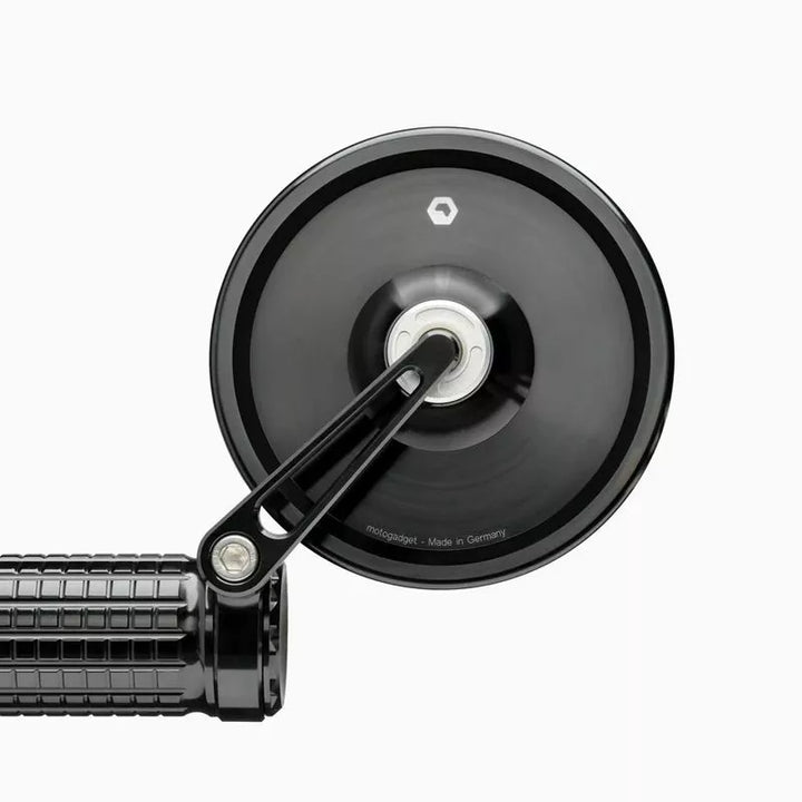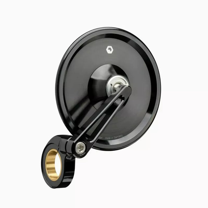 O espelho final do guidão no design redondo clássico pode ser montado acima ou abaixo do guidão. O ângulo do braço do espelho é selecionável individualmente., Nossa série de espelho Glasless Mo.View é única em todo o mundo. A característica especial de nossos espelhos é a superfície do espelho patenteada, feita diretamente do metal do corpo. O próprio alumínio é a superfície do espelho! O corpo do espelho em si é muito fino e leve, criando um design sem peso sem uma borda ou moldura., A superfície do espelho convexo é produzido pelo corte da mosca usando ferramentas de diamante em máquinas de ultra-precisão em Berlim. É então resistente à oxidação, corrosão e abrasão por um revestimento elaborado de plasma no vácuo., O corpo do espelho, o braço do espelho e o grampo para a extremidade manipulável são moídos de alumínio sólido em máquinas CNC e anodizados para alta qualidade. Todos os parafusos são feitos de aço inoxidável. As juntas precisas da esfera do espelho a serem ajustadas confortáveis e muito estáveis. A quebra de vidro ou a queda de vidro simplesmente não é possível!, O espelho final do guidão pode ser montado acima ou abaixo do guidão. , O pequeno braço pode ser girado. O espelho é adequado para o lado direito e esquerdo. Pode ser montado diretamente na extremidade manipulável (22 mm e 1 polegada) ou, se as garras e os acessórios não puderem ser movidos, usando o adaptador de barra MO.VE., diâmetro do corpo do espelho: 99 mm., Espessura do espelho. Mirror Mo.View Classic 60 (com marcação de ECE) com braço, 1x Cramp & Instruções Manual.