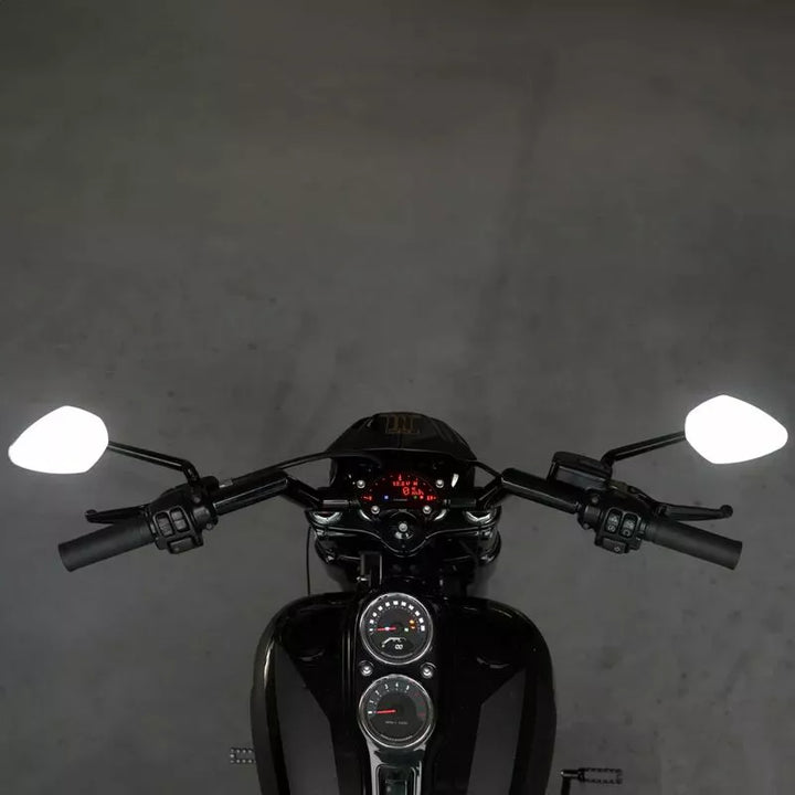 O espelho do complemento pode ser facilmente ajustado a qualquer fio de espelho M10 nas barras da alça. Dependendo da preferência ou do tipo de veículo, existem dois comprimentos de braço para escolher que podem ser perfeitamente presos ao guidão. Para alguns modelos - como a Harley -Davidson ™ Motorcycles - um kit de parafuso MO.VELE correspondente também está disponível separadamente (parte: 06410255), nossa série de espelho sem glas. MO.View é única no mundo. A característica especial de nossos espelhos é a superfície do espelho patenteada, que é trabalhada diretamente do metal do corpo. O alumínio em si é a superfície do espelho., O próprio corpo do espelho se une muito fino e leve, criando um design sem peso, sem aro ou moldura. A superfície convexa do espelho é fabricada pelo corte da mosca usando ferramentas de diamante em máquinas de ultra-precisão em Berlim. É então resistente à oxidação, corrosão e abrasão por um revestimento de plasma complexo no vácuo., O corpo do espelho e o braço do espelho são moídos de alumínio sólido em máquinas CNC e anodizados a alta qualidade. Todos os parafusos são feitos de aço inoxidável. , As juntas precisas da esfera do ajuste confortável e muito estável do espelho. A quebra de vidro ou a queda simplesmente não é possível. O espelho de montagem pode ser montado em qualquer fio de espelho M10 no guidão. Três parafusos de montagem com rosca diferente são fornecidos. O espelho é adequado para o lado esquerdo e direito., Espelho Largura do corpo: 122 mm., Espelho Altura do corpo: 83 mm., Comprimento do espelho do espelho: 150 mm., Espessura do corpo do espelho sem cabeça de bola: 4,5 mm., Peso: 178 g. Braço (com marcação de ECE), 1 x parafuso m10 x 1,5, 1 x parafuso m10 x 1,25 rosca direita, 1 x parafuso m10 x 1,25 Manual de rosca e instruções esquerda.