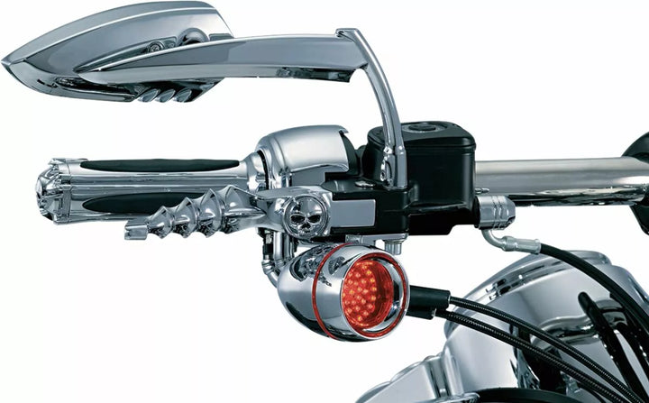 O caule espelhado evoca a aparência de uma foice., A cabeça do espelho se assemelha a uma faca de sobrevivência., A caule e a cabeça do espelho são acompanhados por um mecanismo de junta de bola e soquete de bola de operação suave para fácil ajuste., A cabeça do espelho mede 5-1/2/2 "x 2".