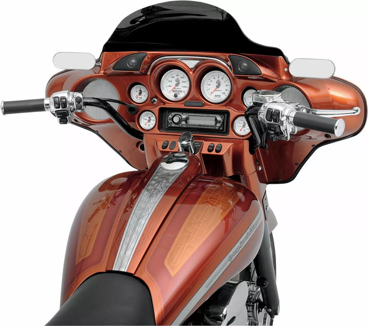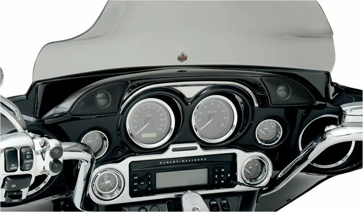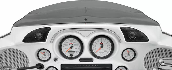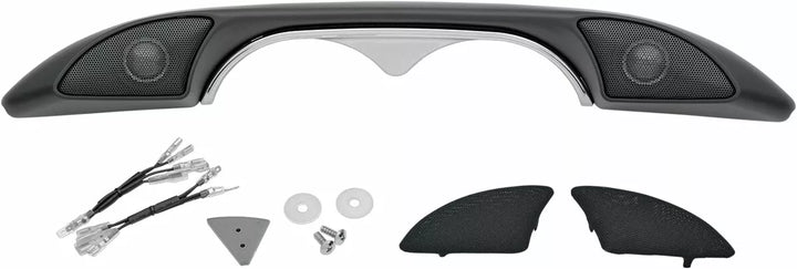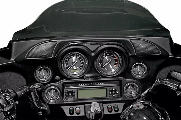 Complete Add-on Tweeter Kit, Doubles as a Fairing Accent Piece with Decorative Chrome Trim (Included), Disassembles Easily to Paint-Match Custom-Painted Fairings, Black "See Through" Grills Includes Includes All Hogtunes Speaker Systems, 98-13 Stock Systems or Bikes With Aftermarket Car Radio, Includes Custom-Designed 50 Watt (RMS) High-Efficient Metalized Dome Tweeters With 3rd Order (18 DB) Passive Crossovers, melhora radicalmente hardware de clareza, modelo de perfuração e fiação plug-and-play está incluída na caixa