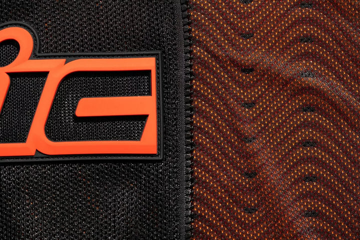 Chassi de malha de poliéster 300d e ferro durável, 1,2 mm-1,4 mm de couro TracSpec ™ na zona de colisão primária, cintura ajustável e cinta de braço, fato esportivo icon®, zíperes YKK®, protetor traseiro EN 1621-2 Nível 1, EN170-70-2