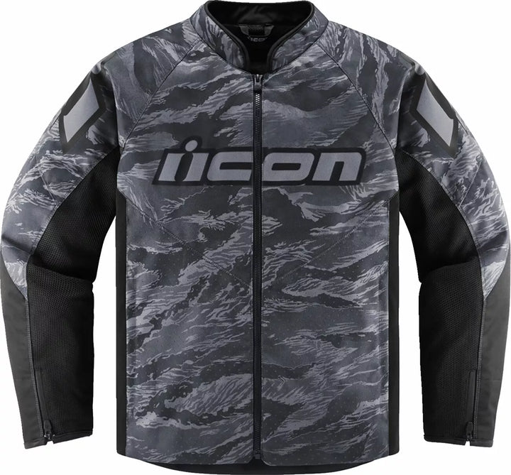Construído no padrão de ajuste esportivo do ICON, a jaqueta é construída em um chassi de poliéster 300D, os painéis de malha de tecelagem de ferro ™ são colocados em áreas estratégicas, aumento significativo do fluxo de ar, protetores de impacto D3O® nos ombros, cotovelos e traseiro
