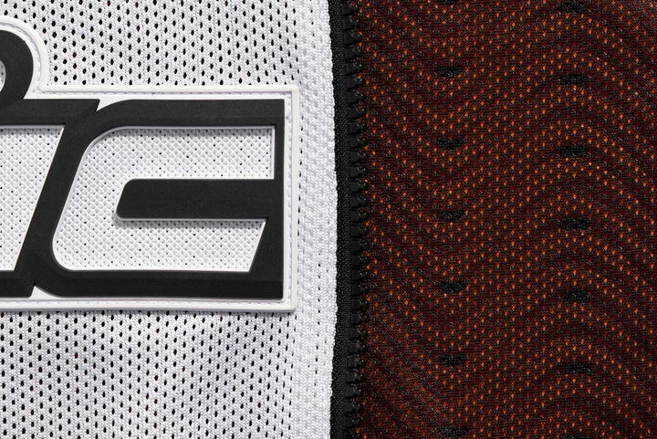 Chassi de malha de poliéster 300d e ferro durável, 1,2 mm-1,4 mm de couro TracSpec ™ na zona de colisão primária, cintura ajustável e cinta de braço, fato esportivo icon®, zíperes YKK®, protetor traseiro EN 1621-2 Nível 1, EN170-70-2